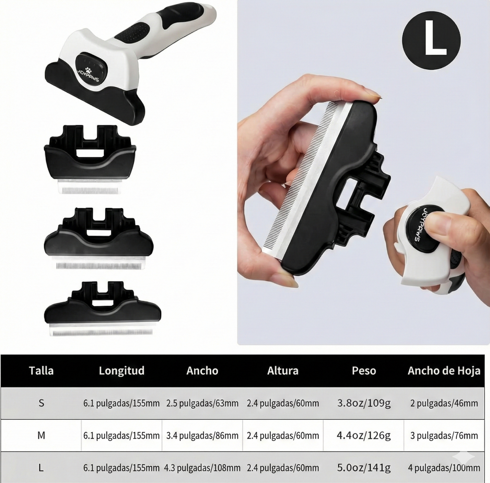 • Remueve el subpelo y el exceso de pelo con facilidad.