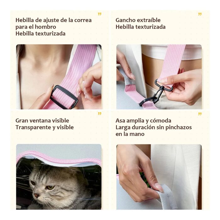 Ideal para gatos y mascotas pequeñas. Sus correas acolchadas y asas suaves garantizan un transporte cómodo tanto para ti como para tu mascota.