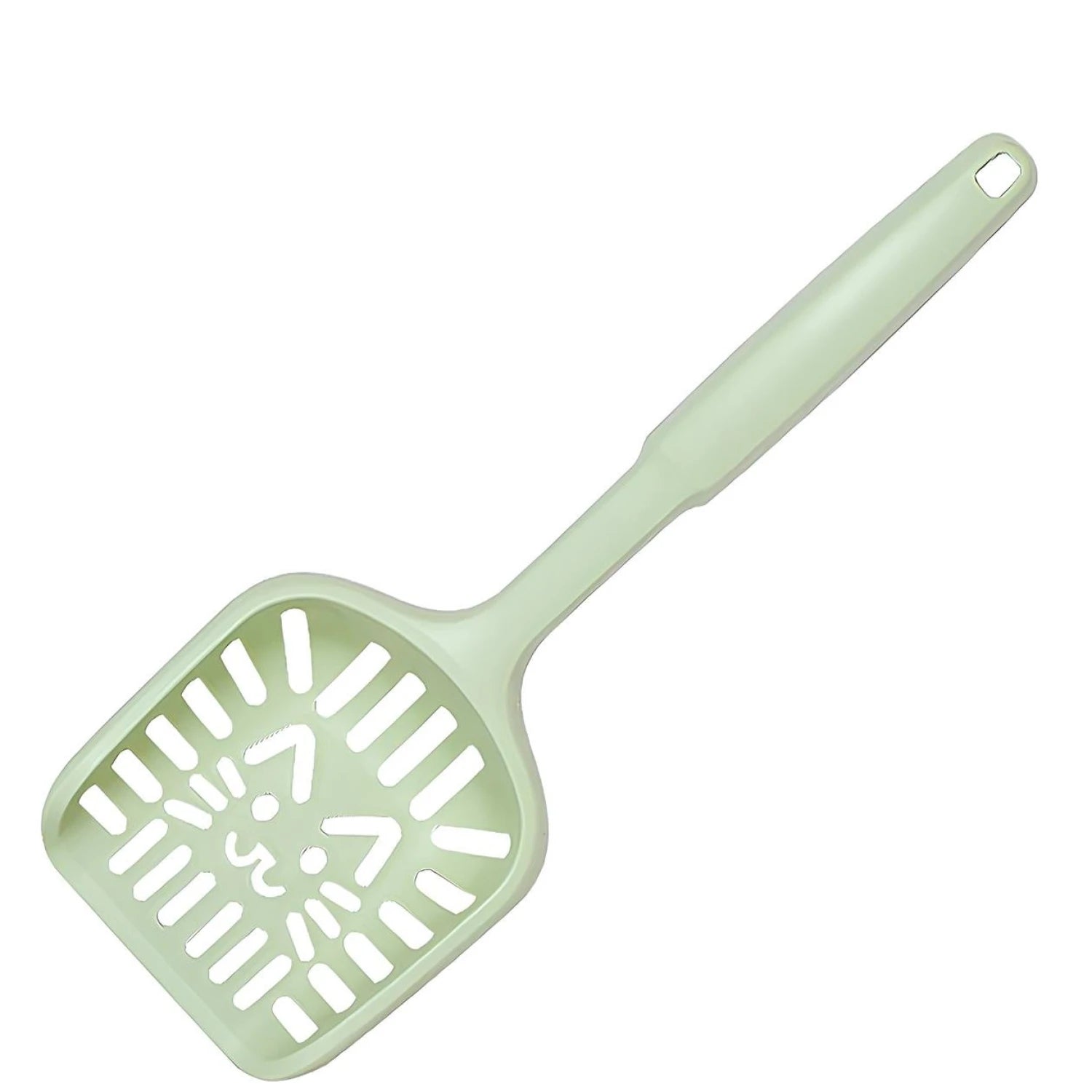 Pala recolectora de heces de gran tamaño, diseñada para una limpieza rápida y eficiente del arenero. Su sistema de ranuras filtra la arena limpia y retiene los residuos sólidos, optimizando el uso de la arena. Fabricada en plástico resistente, es ligera, cómoda y fácil de limpiar. Ideal para uno o varios gatos.